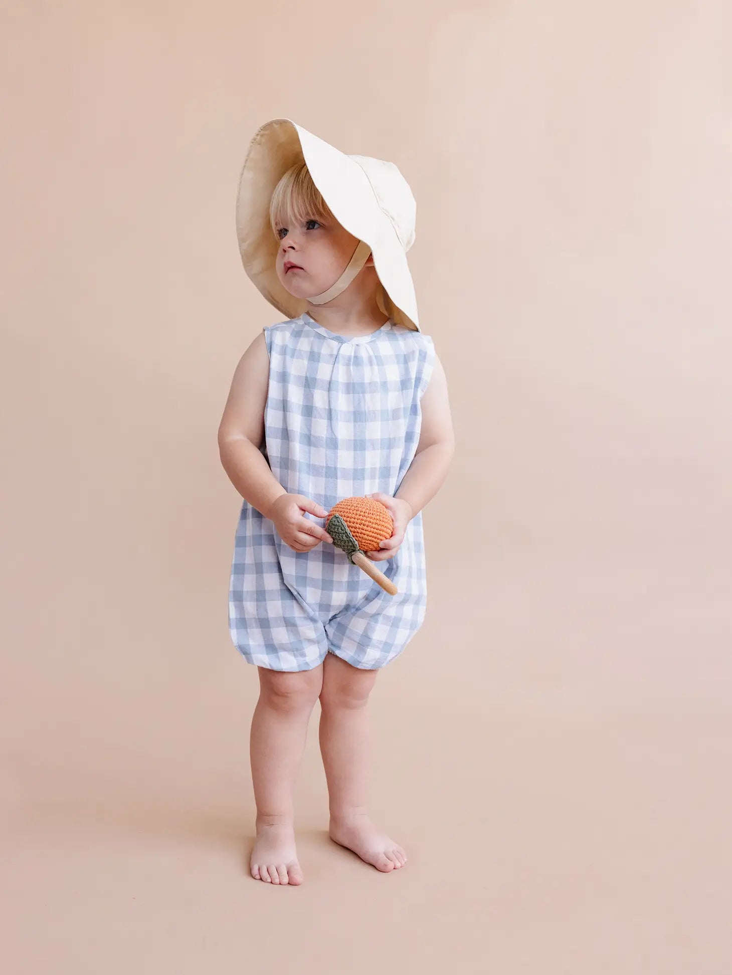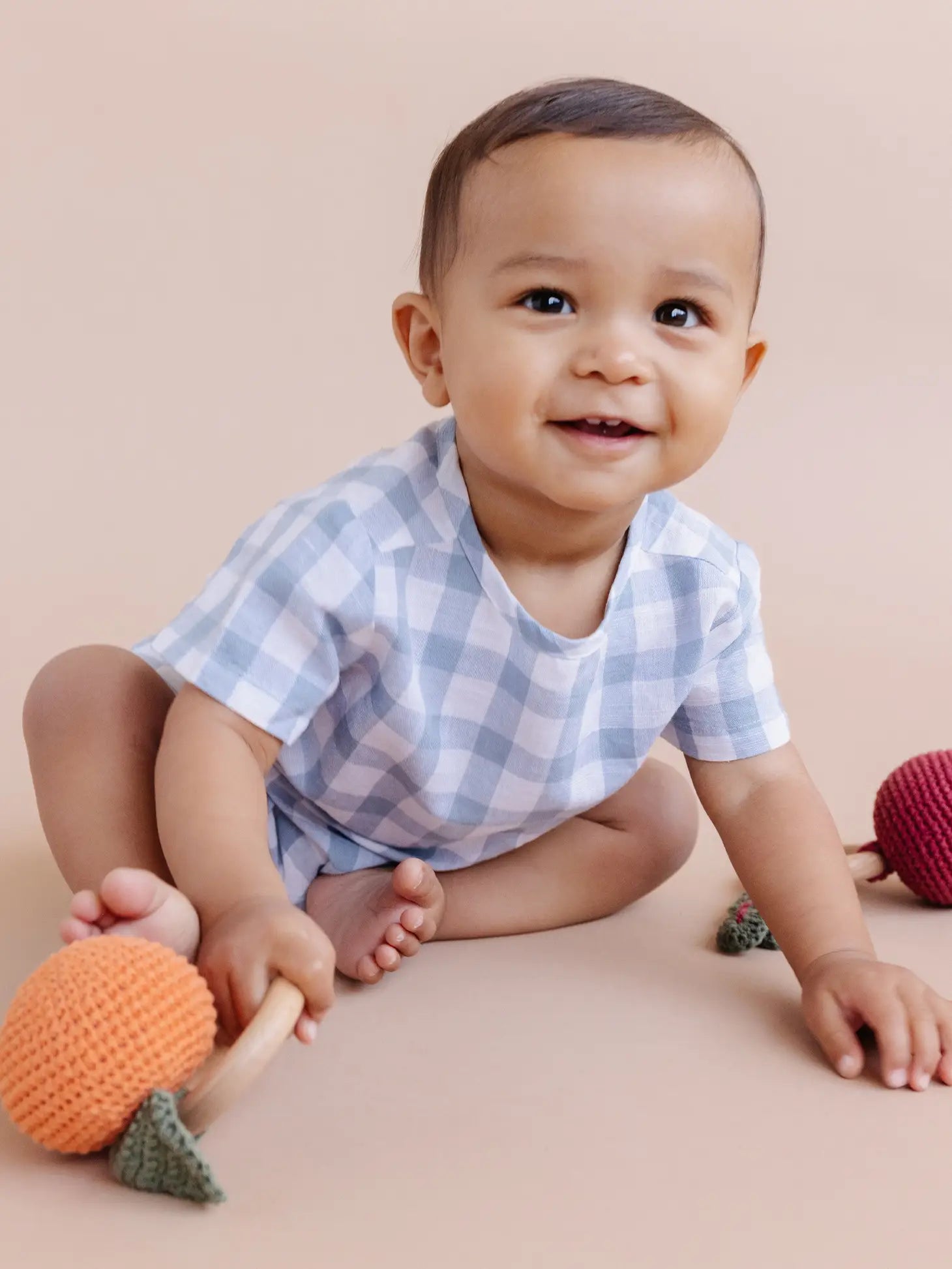 Fill up your fruit basket with fresh fruit and vegetables! This fun cotton Orange teether with a rattle will entertain your little ones or lull them to sleep.