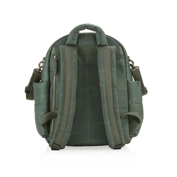 Built for those with their head in the clouds and their feet (usually running around) on the ground, this Camo puffer style diaper backpack makes a total statement while balancing form and function. The lightweight and airy construction is made for those looking to grab and go, while the laidback and luxe design effortlessly creates a major style moment. Take it anywhere, with 14 roomy pockets, comfy padded shoulder straps, and endless eye-catching touches—including sleek brushed metal accents, a sporty corded drawstring, and delicate little details that make all the difference. Pack it up and make it a dream come true.