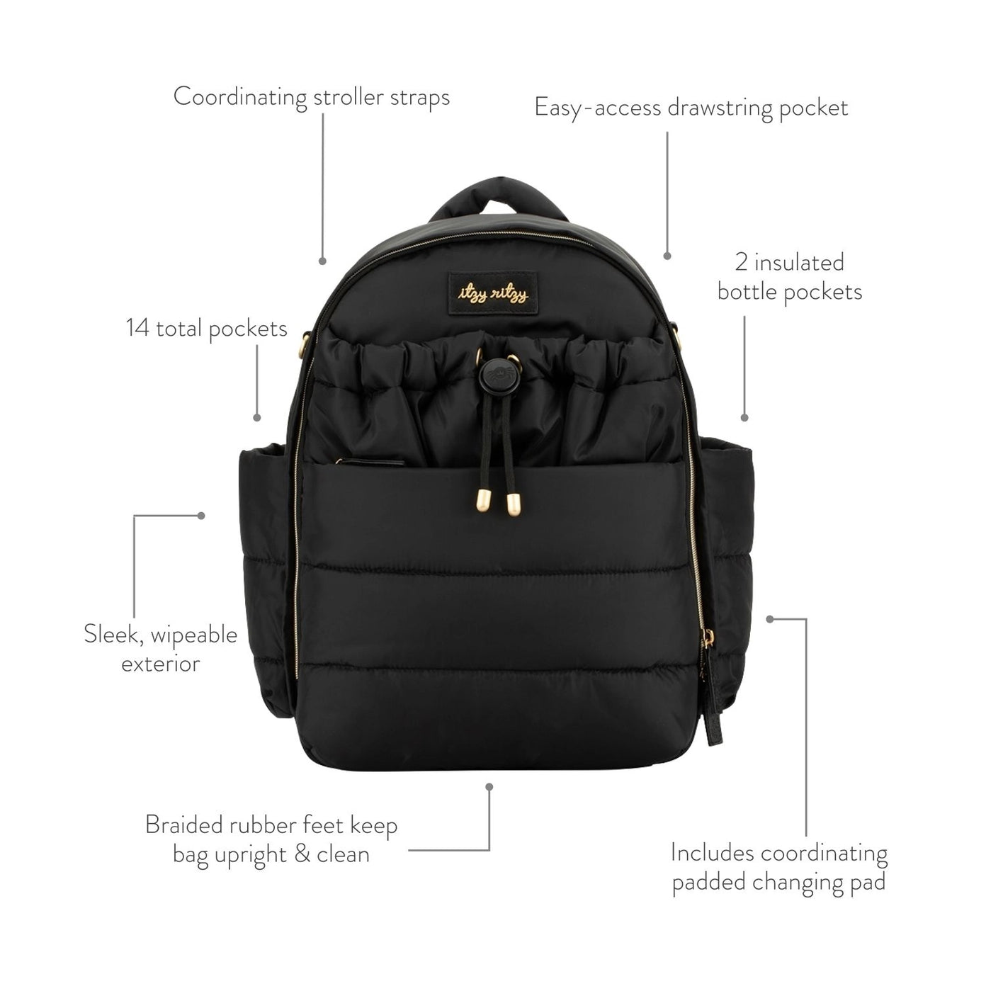 - Includes stroller straps, changing pad and adjustable shoulder straps