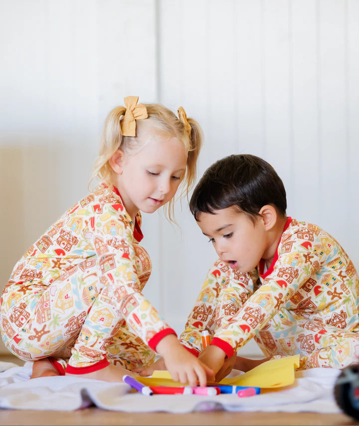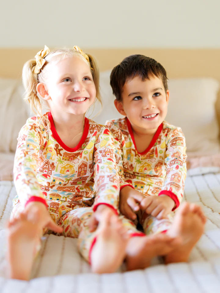 Designed on Maui - Holiday Santa's Surf Shack Long Sleeve Kids Two-Piece Pajama Set