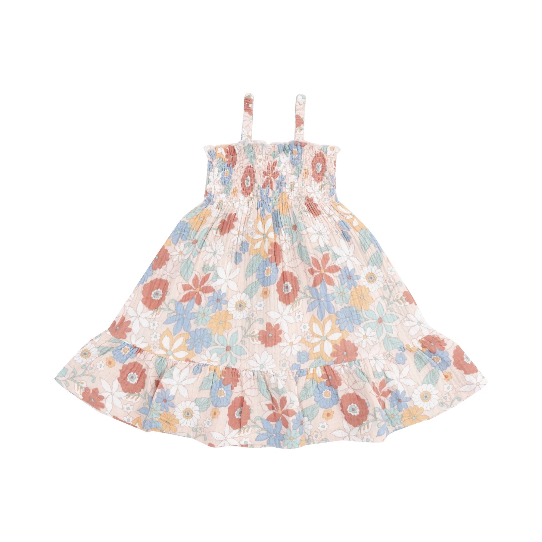 Crafted from soft, breathable organic muslin, this dress features cute tie straps for an adjustable fit and a smocked bodice for a flattering, comfy design. The flowy skirt is perfect for twirling, while the matching diaper cover adds extra cuteness and comfort for all-day wear.