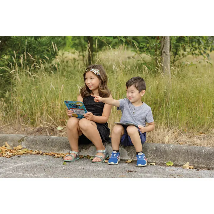 From Outdoor Discovery comes a pack of 4 reusable outdoor bingo cards. Each card holds 24 unique slots with one free spot in the middle. Just slide the windows closed to mark a spot. Spots are themed for different animals, plants, and elements of nature, like trees, mushrooms, bats, and more.
